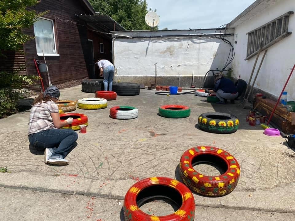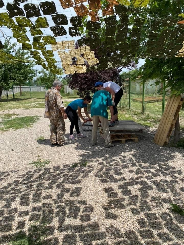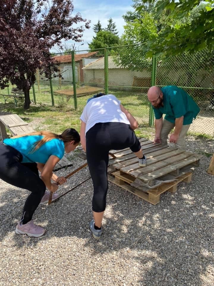 Im Public Shelter Plovdiv packen heute einige der Freiwilligen an, um für die dortigen Hunde Spielsachen und Liegegelegenheiten zu