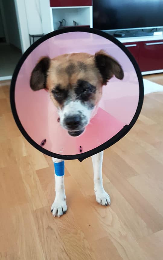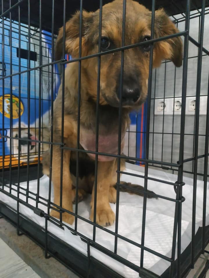 Auch diese Geschichte ist für unsere Verhältnisse unglaublich, aber in Bulgarien leider trauriger Alltag. Der Junghund wurde ausgesetzt oder konnte abhauen und streunte ein paar Tage umher. Der Rüde wurde wahrscheinlich angekettet oder angebunden gehalten, so wachsen vielen Welpen auf dem Land auf (und verbringen ihr restliches Leben so), und mit zunehmendem Wachstum schneidet sich das Halsband oder wie in diesem Fall das Brustgeschirr in den Körper ein. Der Arzt konnte das Geschirr unter Narkose entfernen und die Wunden des Rüden desinfizieren. Der junge Hund befindet sich nun in der Station in Ihtiman, wo er erst mal aufgepäppelt wird, und sich wie viele andere Vierbeiner über Paten freuen würde.