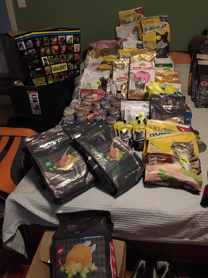 Die Hilfe des Unternehmens kommt gerade richtig! Wir durften beim Händler von Tierprodukten heute ca. 1 Tonne an Hunde- und Katzenfutter abholen. Vielen Dank dafür im Namen der Fellnasen.