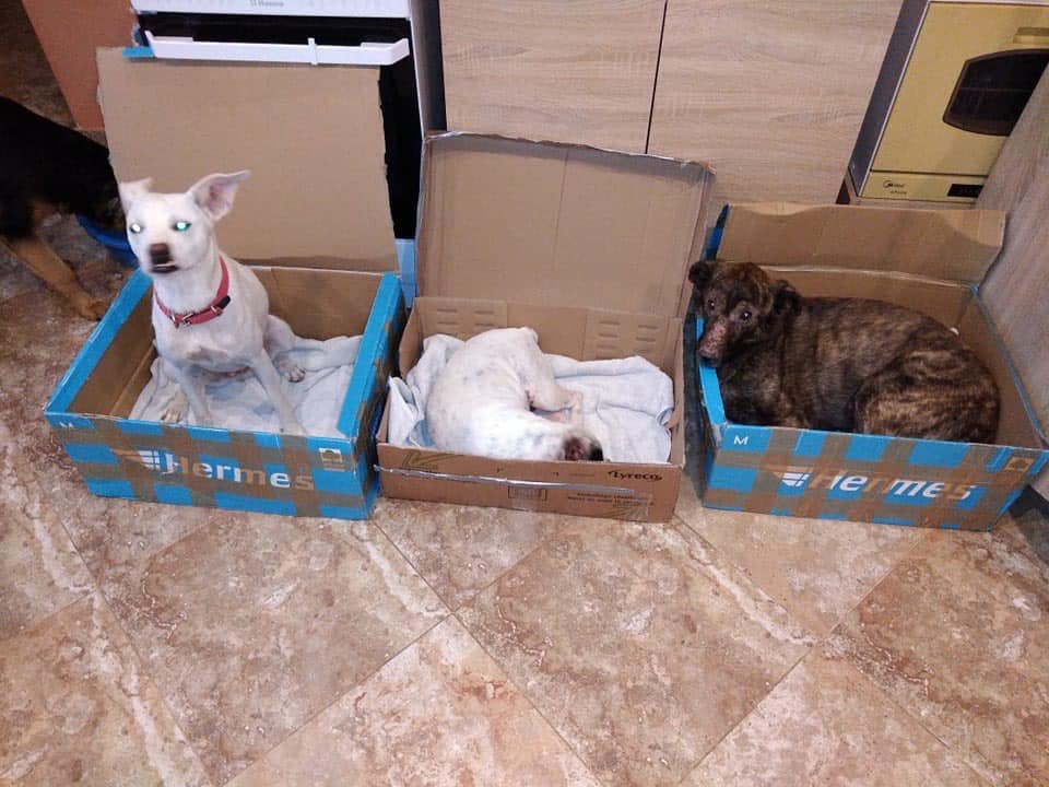 Vierbeiner waren bereits alle beim Tierarzt und sind erst mal bei Nina & Nuriye zuhause untergebracht. Mira und Briana sind z.B. sehr ängstlich und können nicht gleich in der Auffangstation