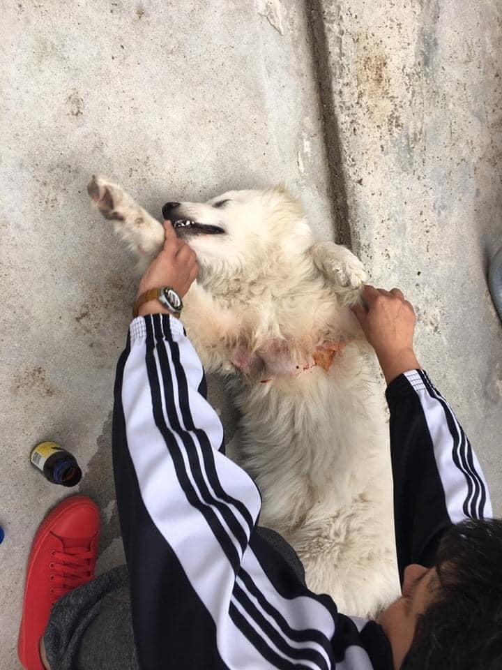 Unsere Tierschutzfreundin in Plovdiv fand am Strassenrand einen angefahrenen Hund, der sich nicht mehr bewegen und nur noch schwer atmen